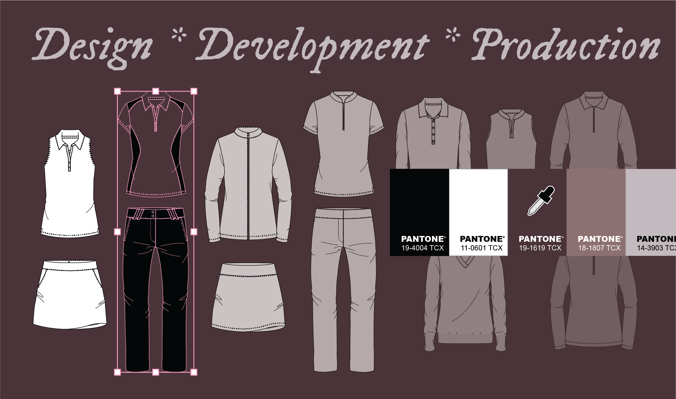 Design hand-offs with fabric/fit/pattern direction.