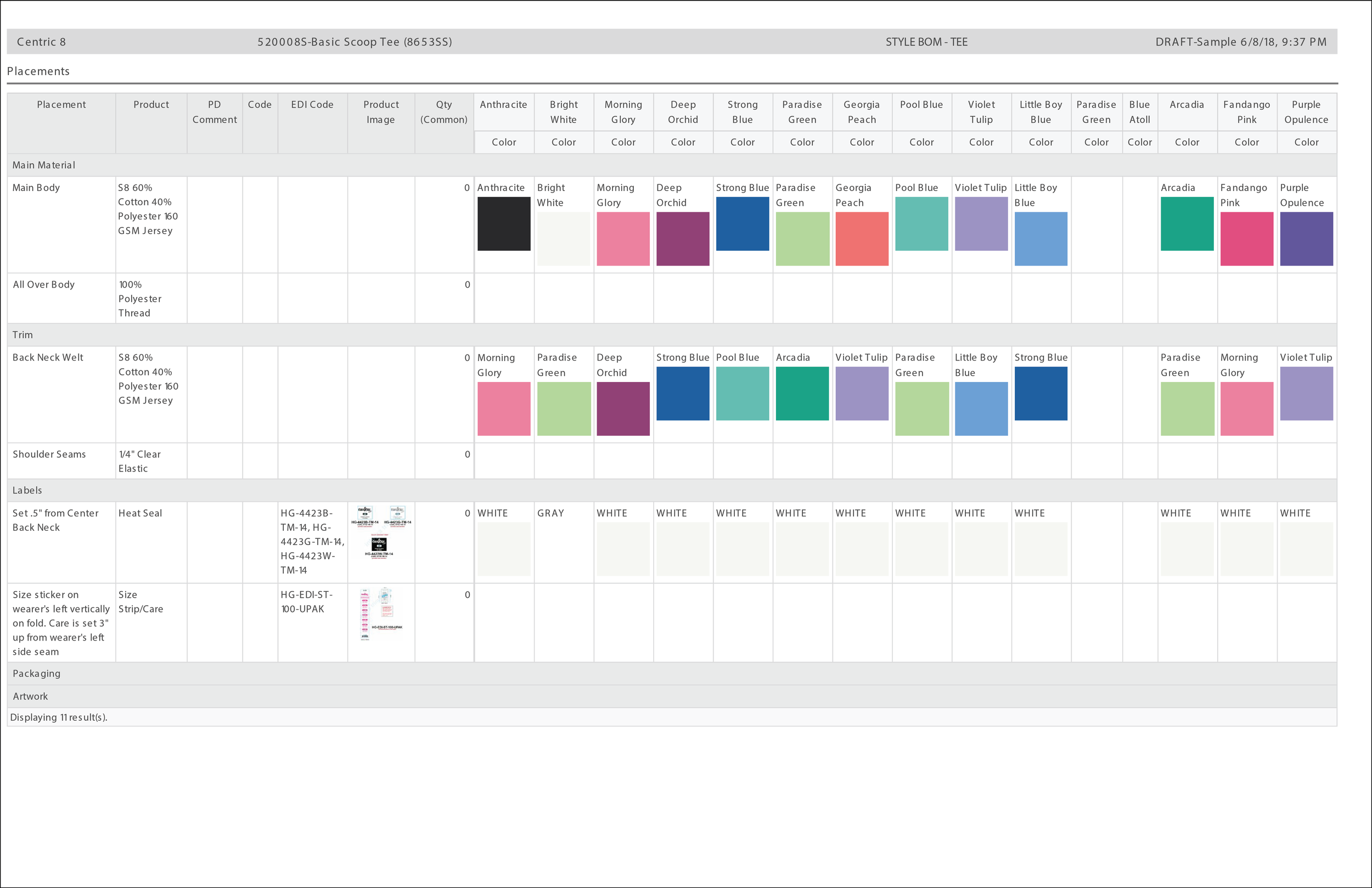 TECHPACKS: Add colorways to techpacks to avoid confusion with vendors since styles are very artwork-heavy and color breakdown can be confusing.